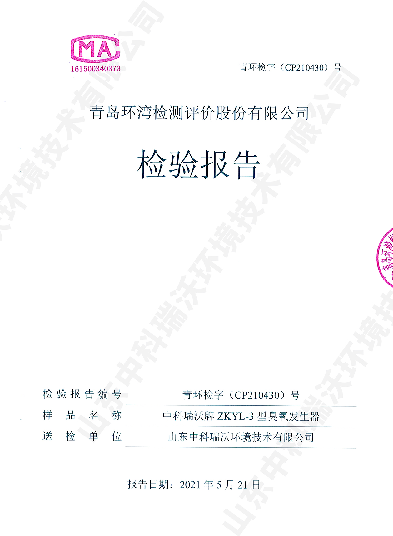 醫(yī)療污水處理設(shè)備檢測報告~臭氧消毒