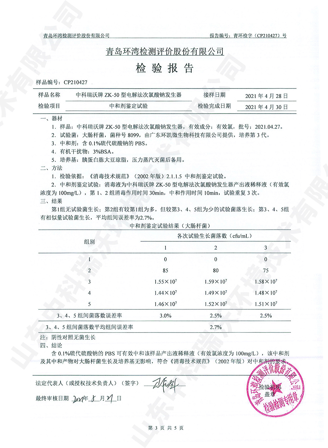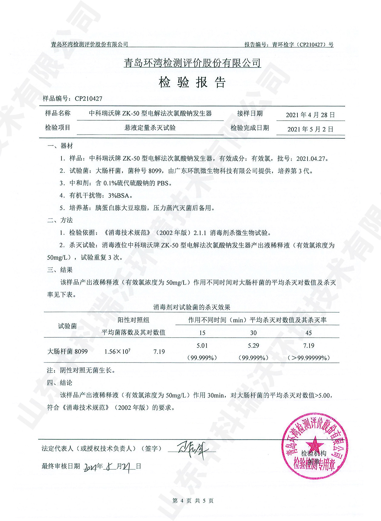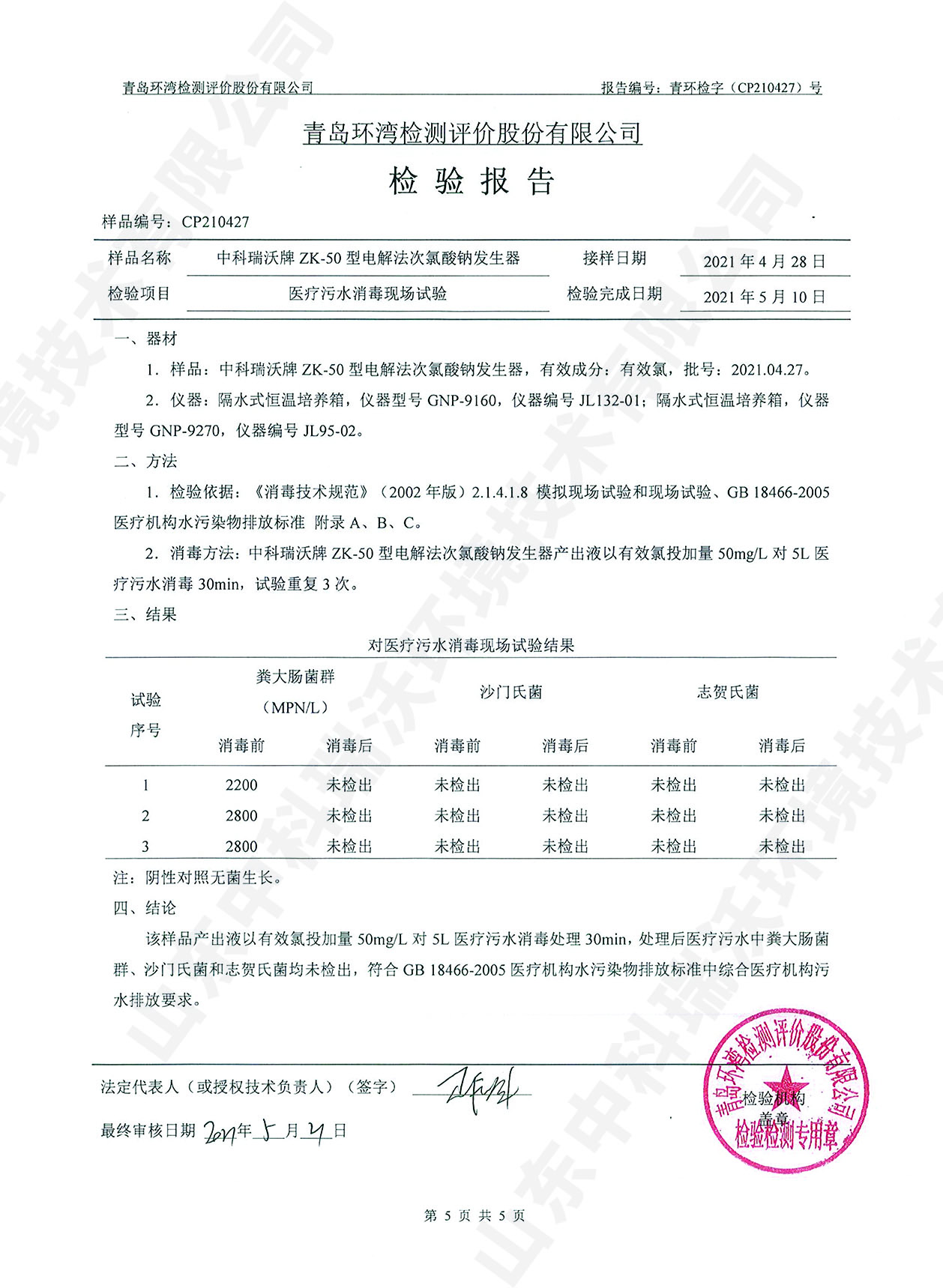 醫療污水處理設備檢測報告~二氧化氯消毒
