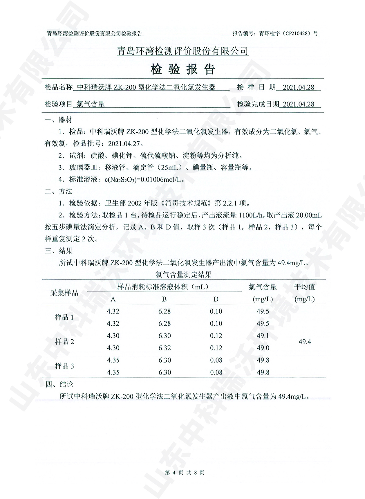 飲水消毒設備檢測報告~二氧化氯消毒